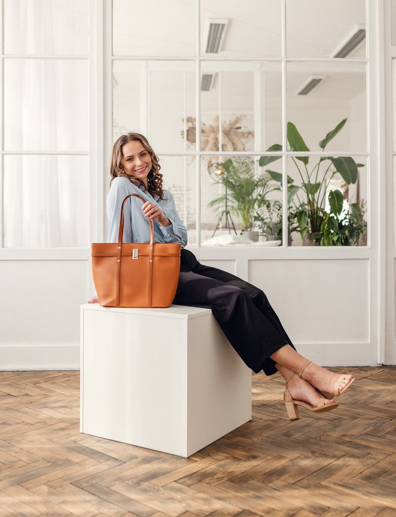 - Große Handtasche mit festem Boden, geschützt durch 4 Metallfüße