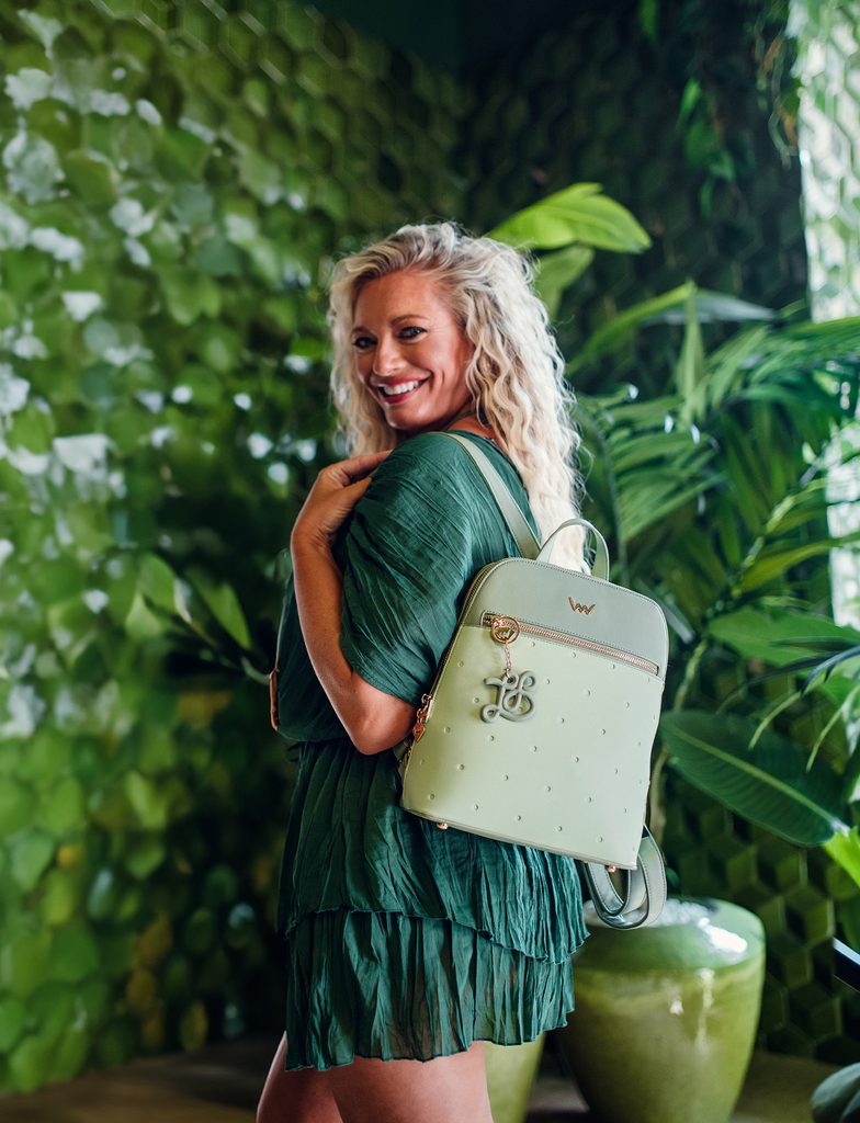Wenn du Verspieltheit und Leichtigkeit liebst, ist Lora genau das Richtige für dich. Mit feinen Polka-Dots und einer frischen, grünen Farbe ist dieser Rucksack voller Optimismus. Goldene Beschläge und das ikonische Monogramm von Lucie Borhyová verleihen diesem niedlichen Stück einen eleganten Touch. Ideal für den Alltag, der dir Freude bereiten wird.