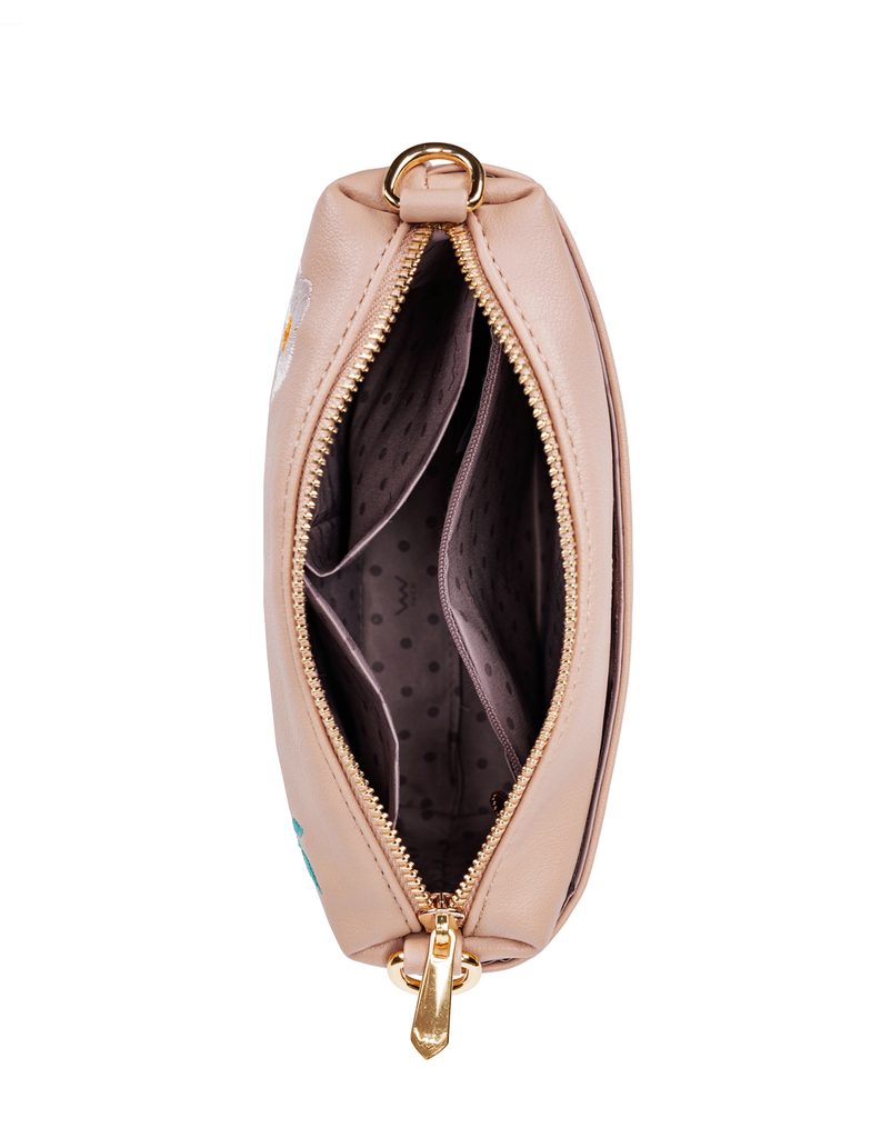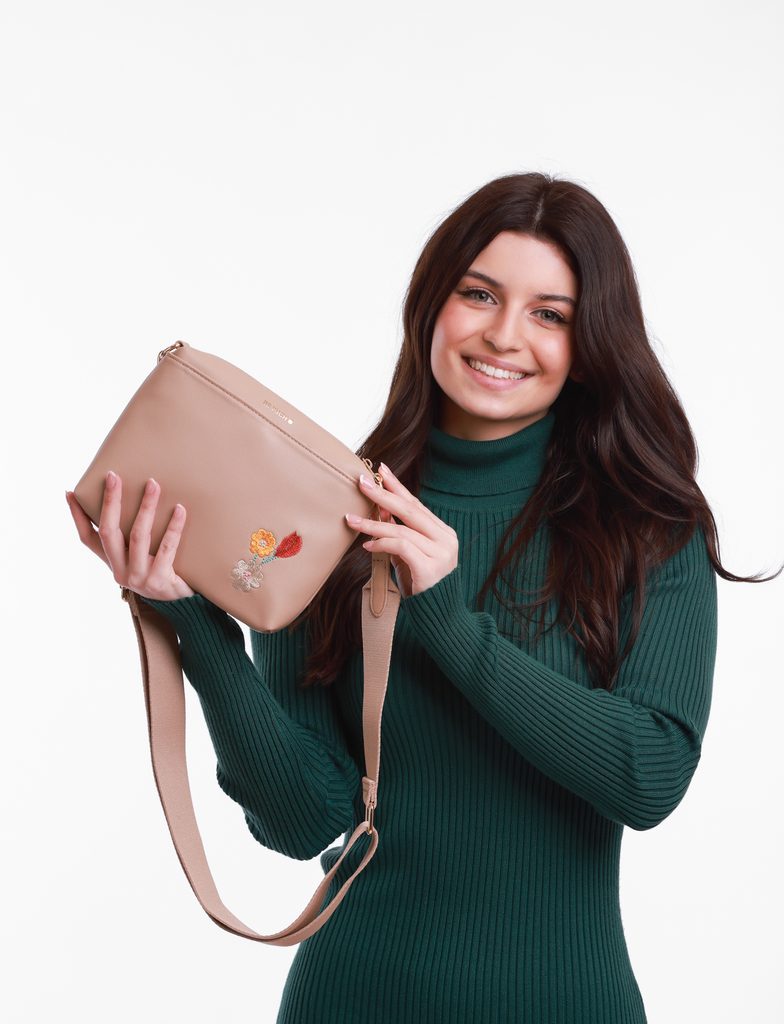 Coalie Flowers Beige Crossbody-Tasche mit Blumenstickerei