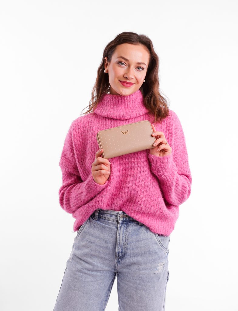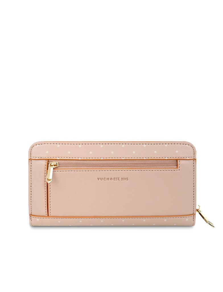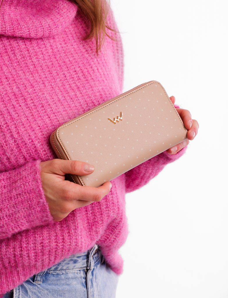 Fedora Beige gepunktete Geldbörse mit Reißverschluss