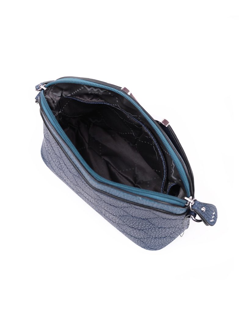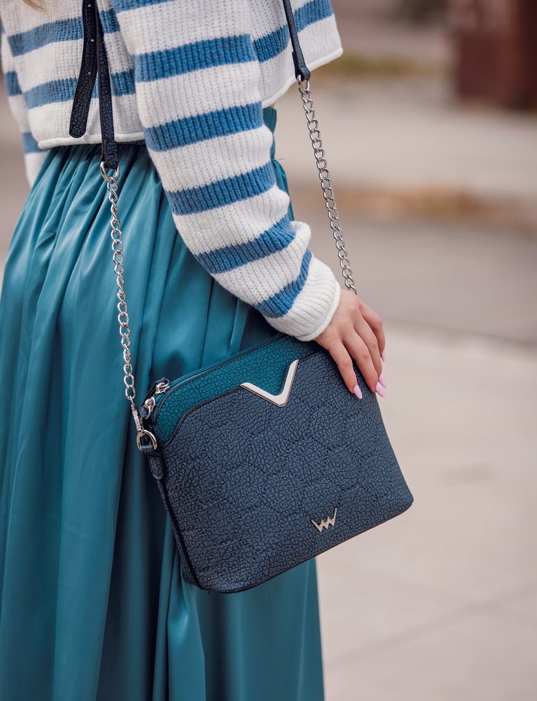 Mehr InformationenDas Blau ist gut, aber die beiden Blautöne sind geradezu ausgezeichnet. Die Kombination von blauen Farben mit dezenten silbernen Accessoires macht Perry zu einem eleganten Stück, das man einfach nicht übersehen kann. Praktisch ist die Crossbody-Tasche dank ihres Riemens, der die Hände frei macht. Sie werden sich auch über die Innentaschen freuen, in denen Sie Ihre Sachen in Ordnung halten können.