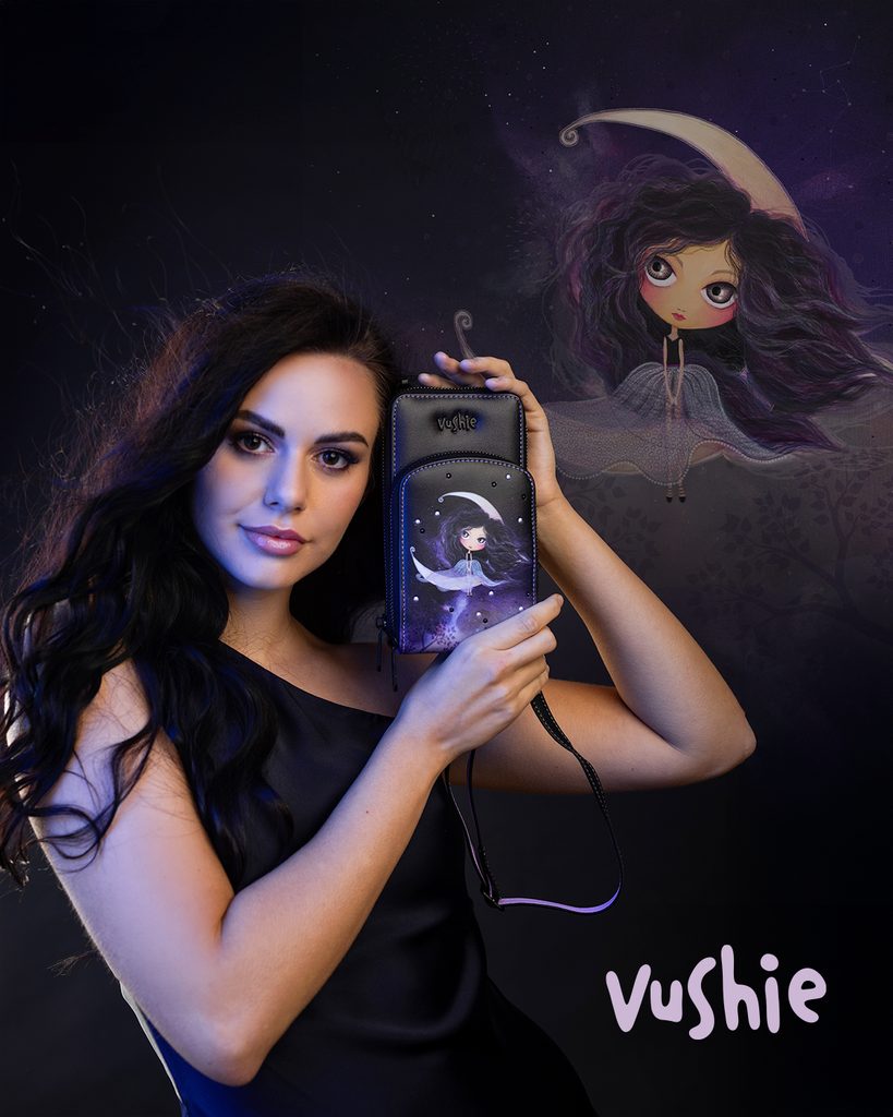 Crossbody Geldbörse, die den Zauber der Nacht verbirgt. Sie trägt ein Stück von Lilian in sich. Das Mädchen, das Dich mit ihrer Ruhe umhüllt und all Deine Geheimnisse…
