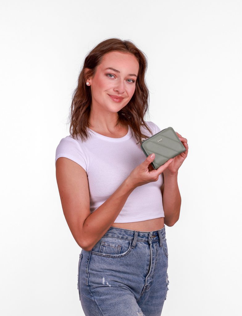 Azra Green kleine gesteppte Geldbörse mit Druckknopf