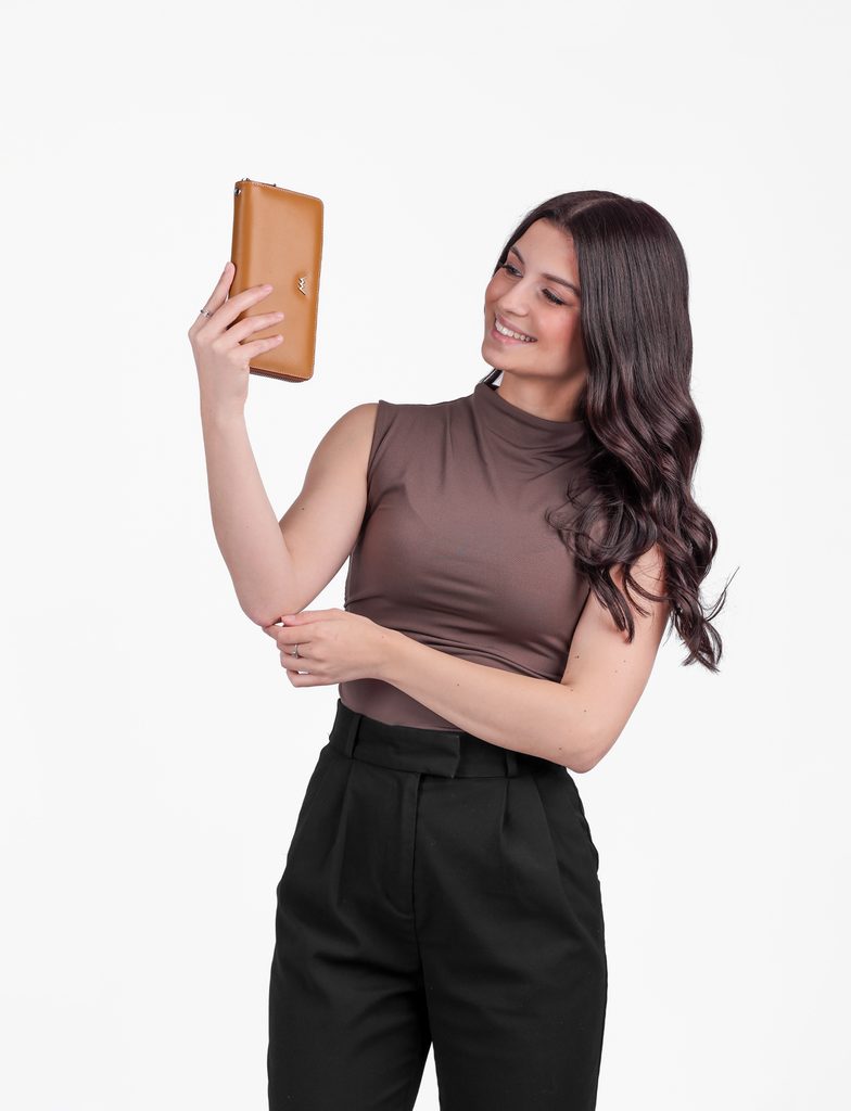 Rodriga Mustard große Ledergeldbörse mit Handschlaufe