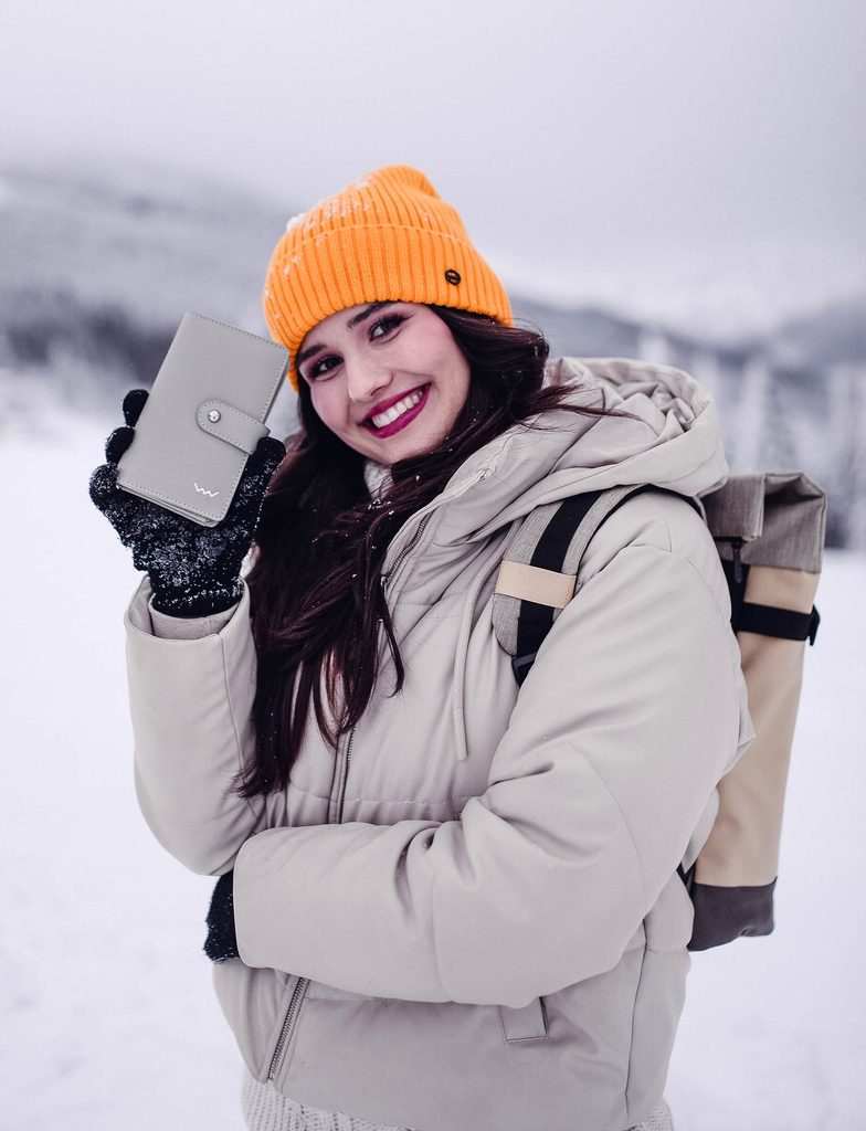Einfacher geht es nicht. Wirklich. Einfach grau. Einfach genau richtig groß. Einfach glatt. Einfach Maeva. Mit mehreren Fächern für deine Karten und einem transparenten…