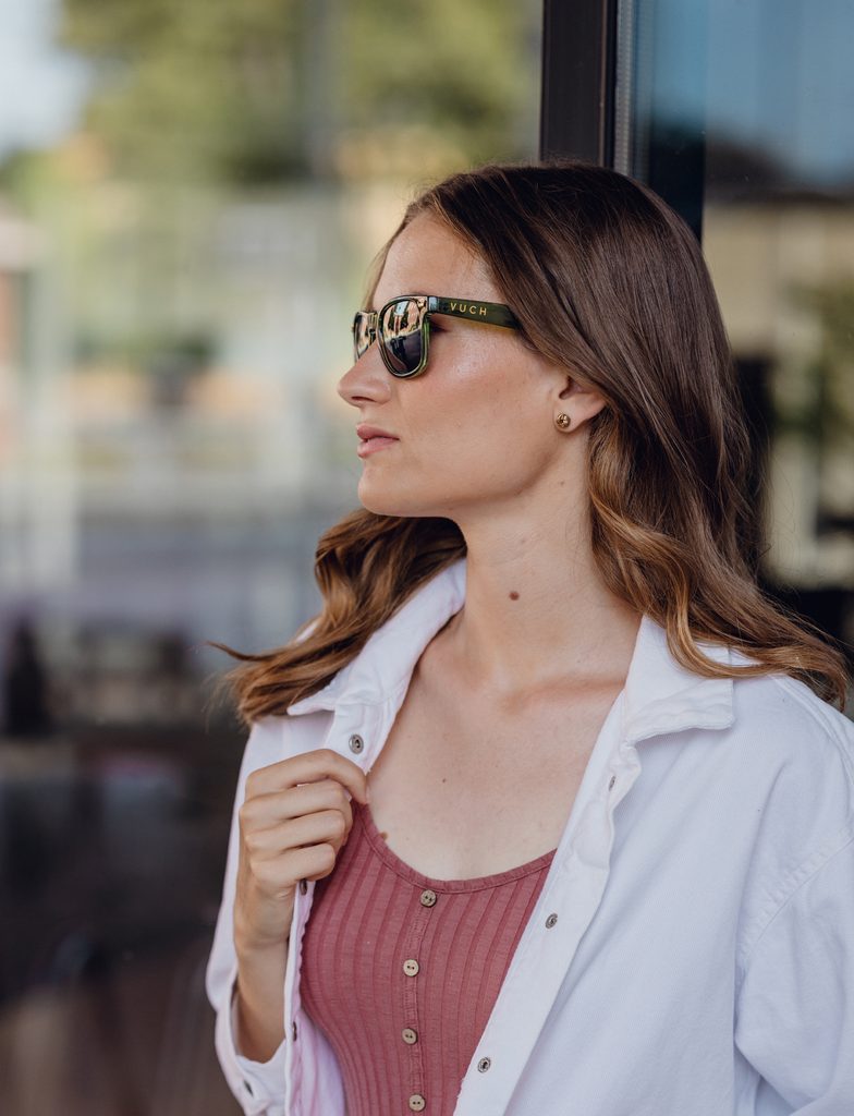 Mehr InformationenDiese Brille sucht keine Aufmerksamkeit, bekommt sie aber trotzdem immer. Die zeitlose Form passt zu jedem Gesicht, polarisierende Gläser aus TAC-Material sorgen für scharfe Sicht ohne Blendung, sattere Farben und angenehmen Kontrast auch bei starker Sonne. Und das Leopardenmuster an den Bügeln? Ein kleines Detail, das dem ganzen Look Selbstbewusstsein verleiht. Dank der leichten Ausführung drücken sie auch nach einem ganzen Tag nicht, und die Bio-Zellulose in den Gläsern erfreut nicht nur die Augen, sondern auch den Planeten.