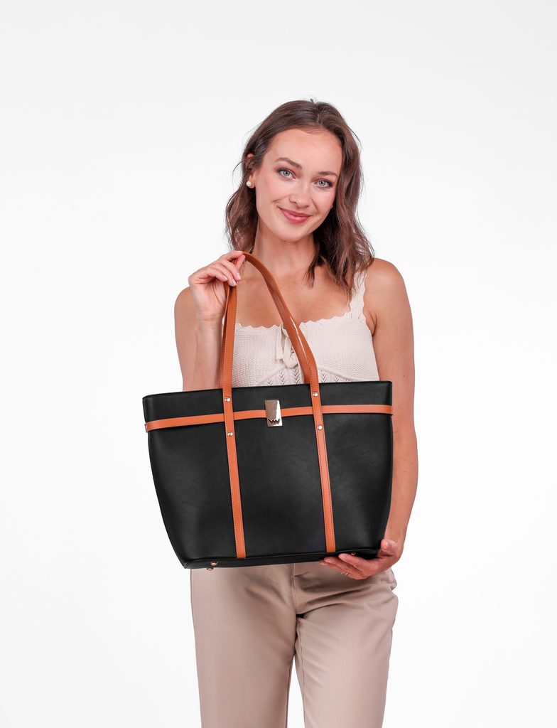 - Große Handtasche mit festem Boden, der durch 4 Metallfüße geschützt wird