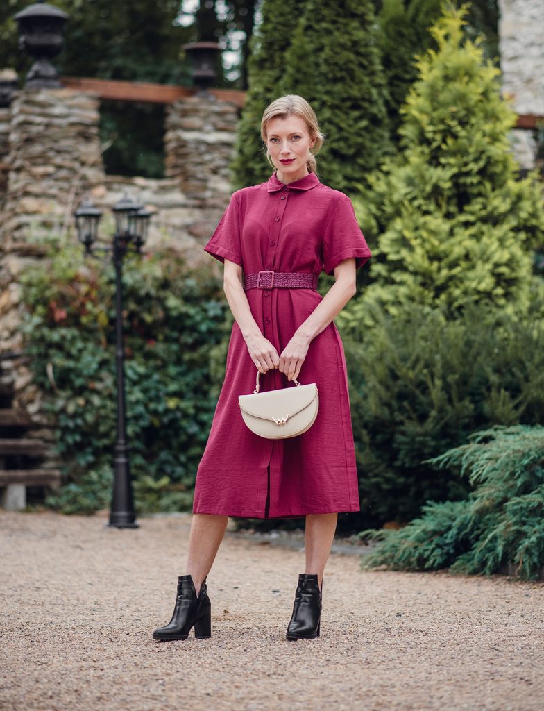 Handtasche in der Form unserer Gürteltasche Tricia, aber mit einem kleinen Twist – einer neuen Metallschließe, die Aufmerksamkeit verlangt. Elegant, robust und genau…