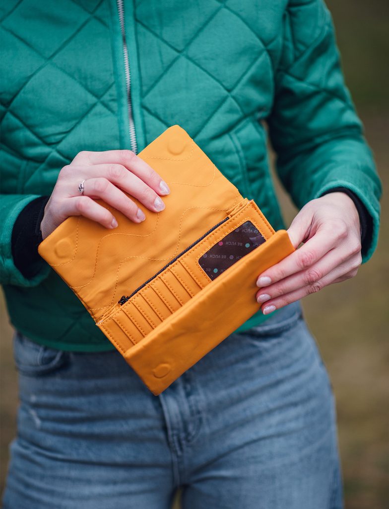 Leicht wie eine Feder und dennoch geräumig – lerne das neueste Familienmitglied aus weichem Material kennen! Eine große Geldbörse mit Klappe, die mit deinem Tempo…