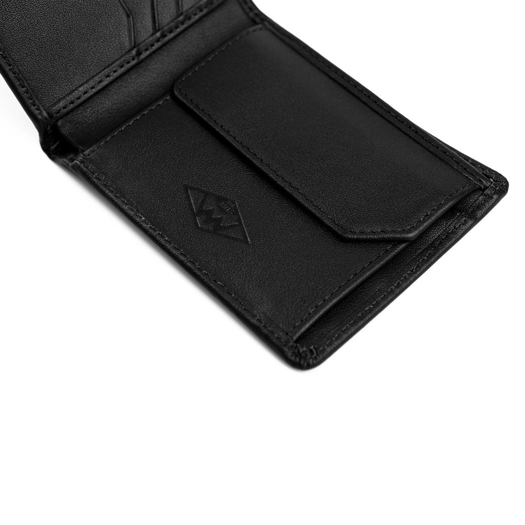 Mehr InformationenIn der Einfachheit liegt die Schönheit. Clyde ist Schönheit. Kein Verschluss oder überflüssige Nieten. Ein einfaches schwarzes Modell, das aber perfekt funktioniert. Im Inneren findest du Kartenfächer und eine Tasche für Münzen und Banknoten.
