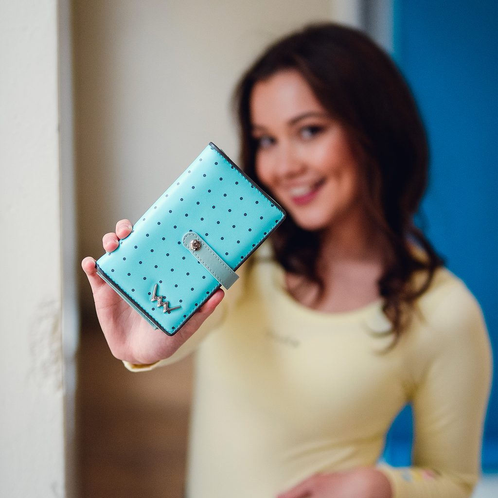 Lance Blue mittelgroße gepunktete Geldbörse mit Patentverschluss