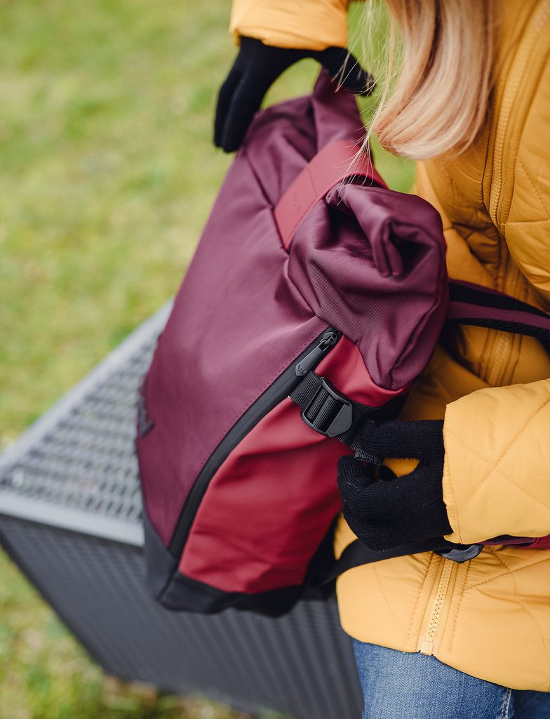 Mehr InformationenEgal, ob du eine Geschäftsfrau bist, die jede Woche ins Büro fliegt, oder eine Schülerin, die zum ersten Mal mit ihren Freundinnen auf Europareise geht... Unser erster Rolltop-Rucksack ist perfekt für Reisen, mit vielen cleveren Taschen und einem elastischen Band auf der Rückseite, das sich leicht am Koffer befestigen lässt. Außerdem ist er im Grunde aufblasbar. Wohin geht es also?