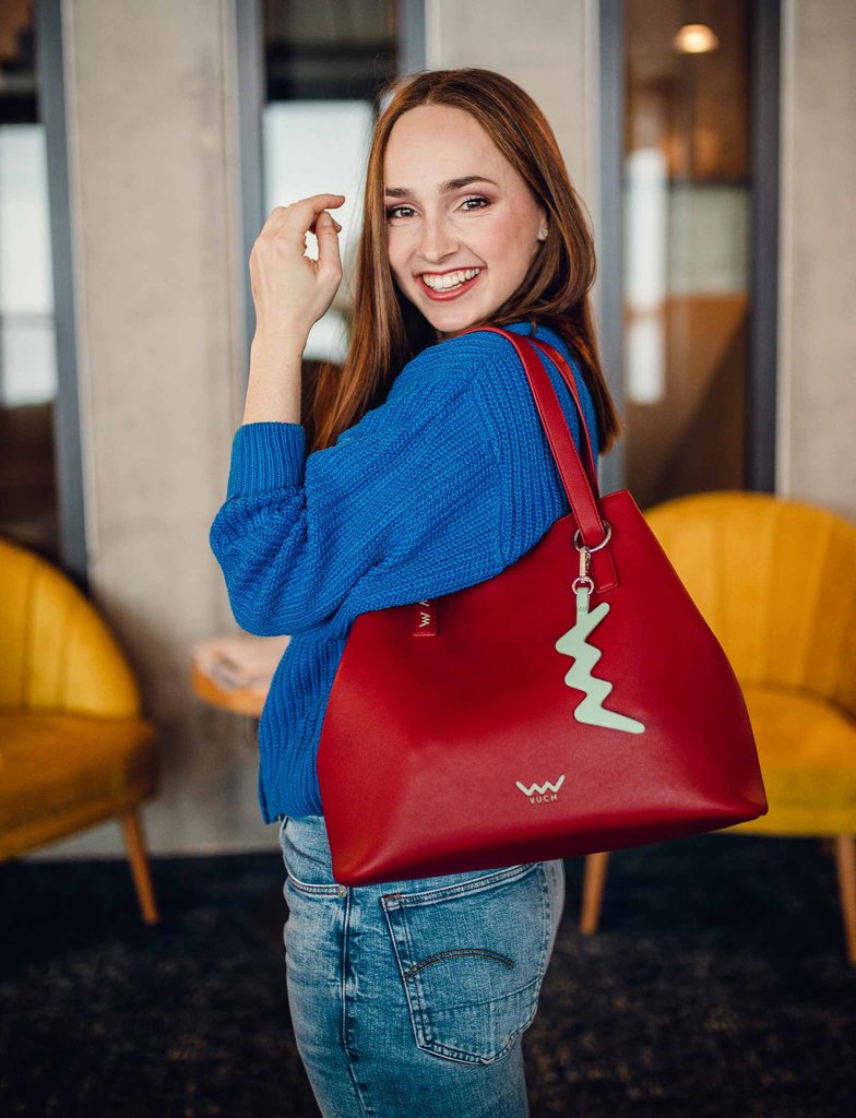 Roselda Red glatte Tasche mit dekorativem Logo