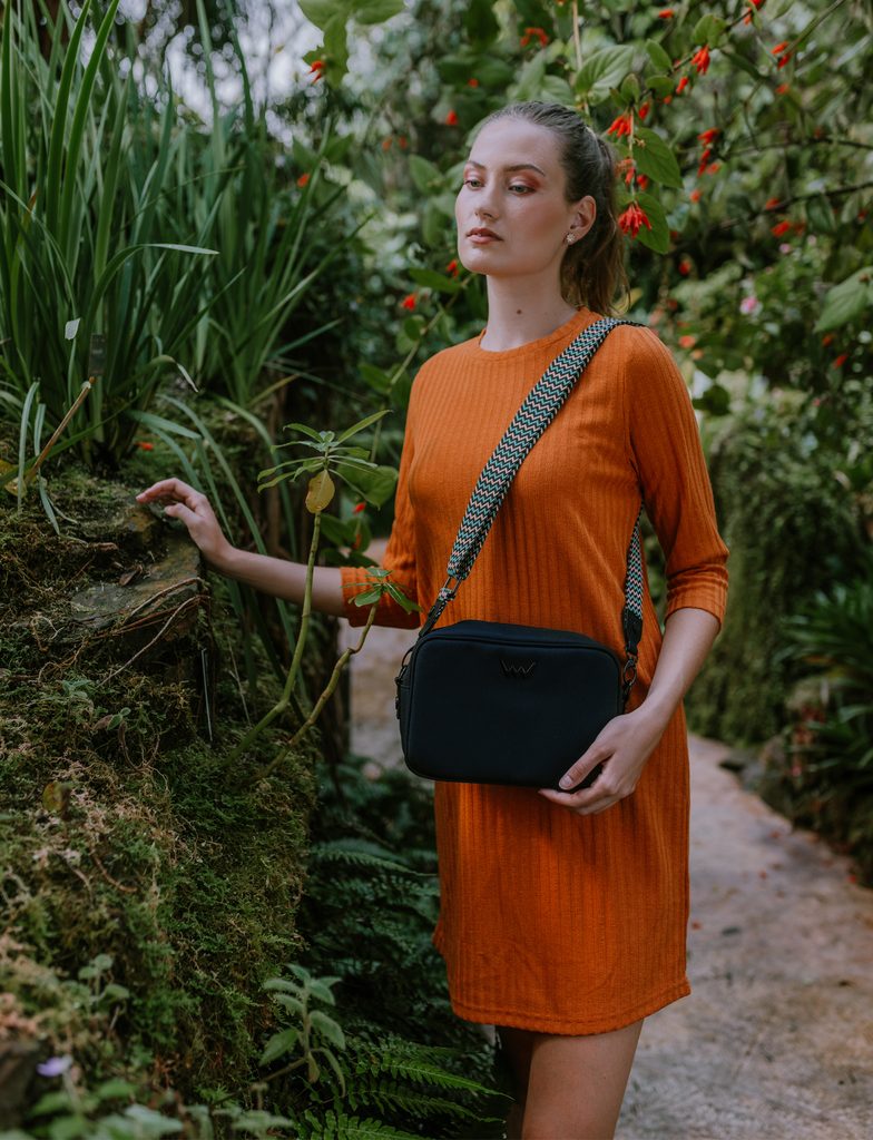 Sigi Black Crossbody-Tasche mit buntem Gurt