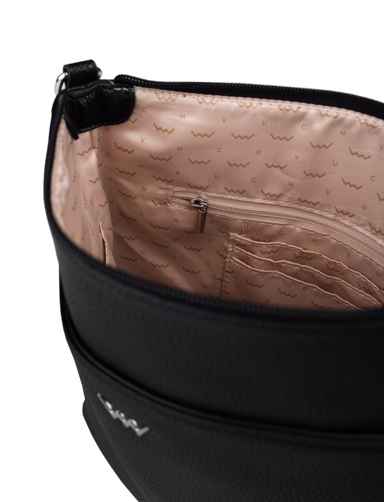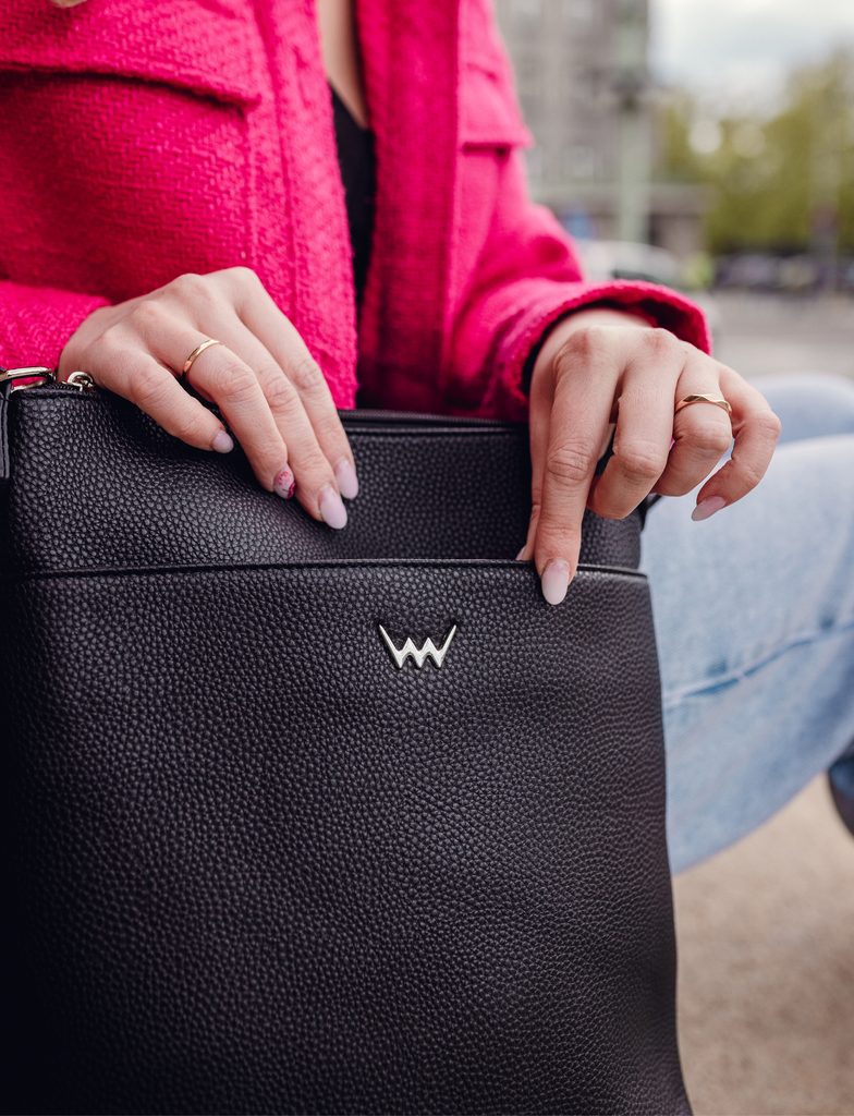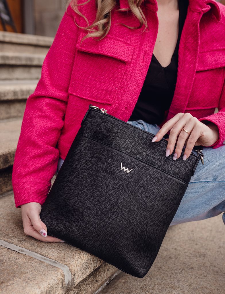 Ein fester Bestandteil der Garderobe einer jeden Frau? Praktische Umhängetasche in elegantem Schwarz. Werfen Sie einfach Ihre Schlüssel, Ihr Portemonnaie und Ihr Handy…